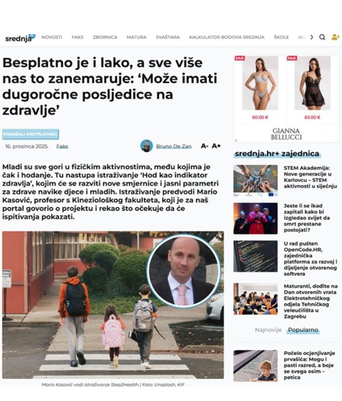 Dana 16.12.2025. godine na portalu Srednja.hr objavljen je prvi takst o problemu hoda kojim se bavi naš pro...